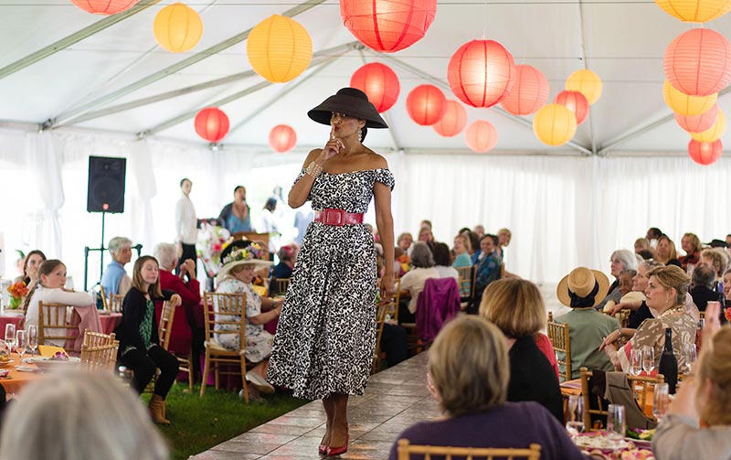 An event is only allowed to call itself annual once it has occurred more than a single time, but the very first Garden Party and Fashion Show at Featherstone Center For The Arts, on Mother’s Day weekend in 2010 already had the stamp of tradition to it. It was then that now-director-emeritus Francine Kelly and executive director Ann Smith, along with their amazing team of artists and organizers, put up a humongous white tent in the green field behind the campus buildings. Pots of tea were brought to the dozen-plus large round tables, platters of tiny sandwiches and pastries lined a buffet table, and a runway the length of a basketball court was trod upon by models of all ages, sizes, and pizzazz, strutting that year’s ensembles from some of our Island’s fabled fashion designers.