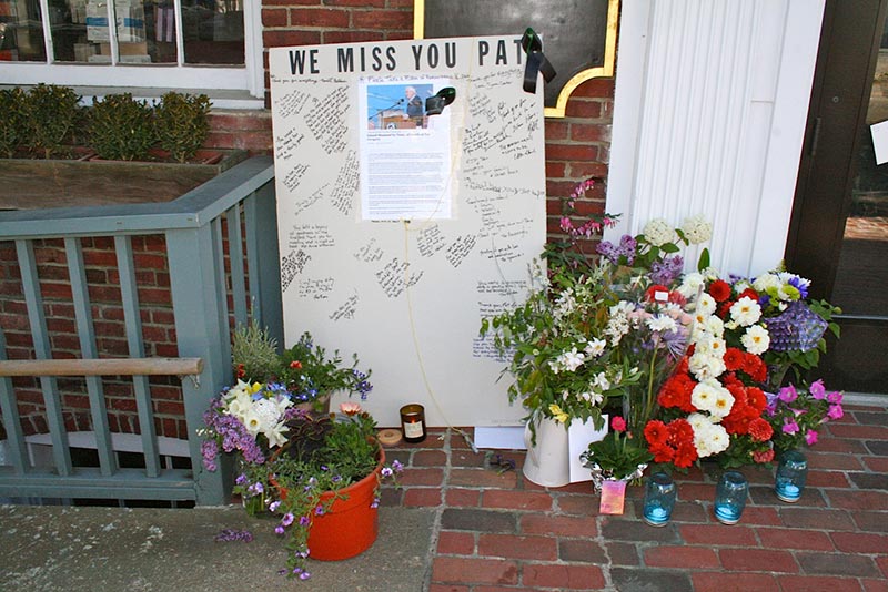 In an unrelated gesture, a sentiment board with Pat Gregory’s photo and the headline, “We miss you Pat,” was placed by the door of the Educomp Building in Vineyard Haven, the computer and art supplies store he owned. Messages expressed the sense of sorrow.