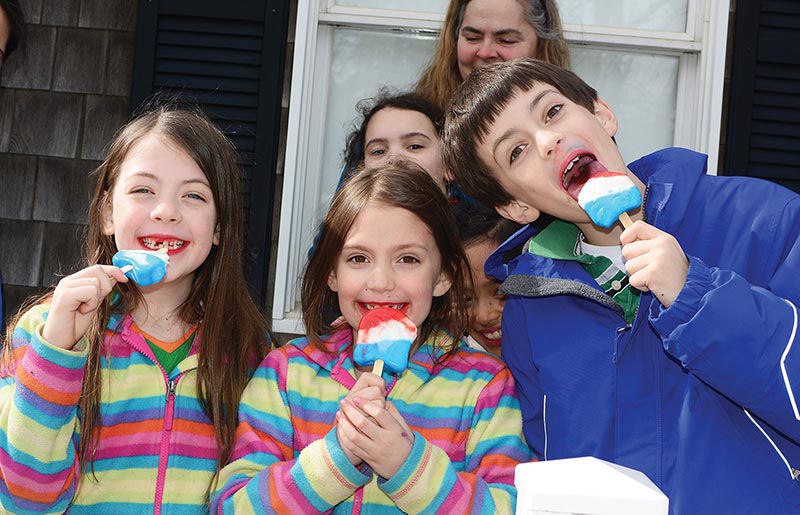 By 3 pm, the rain tapered off, and Martha’s Vineyard Regional High School student correspondent Sophie Petkus reported: “There were tons of kids arriving when we got there. I ordered a grasshopper Blizzard with hot fudge. Sarah [Dawson, on break from the University of Vermont] got a chocolate Blizzard with Oreo, Heathbar and M&M’s.”