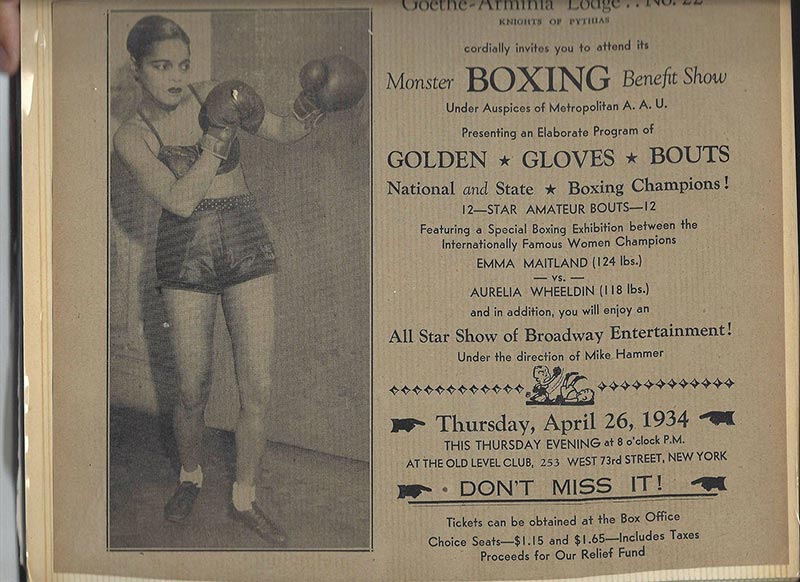 Like many African Americans of that time, Ms. Maitland headed for Paris to live free of racist barriers and seek ways to support herself and her baby girl. On stage at the Moulin Rouge she danced, and later teamed up with another performer for a boxing skit. But although it began as a creative stage attraction, Ms. Maitland began to pursue boxing seriously, training, competing, and eventually being named the world’s lightweight female boxing champion. After her retirement from boxing, she continued to wrestle, and taught dance and gymnastics in New York City, advocating a healthy lifestyle.