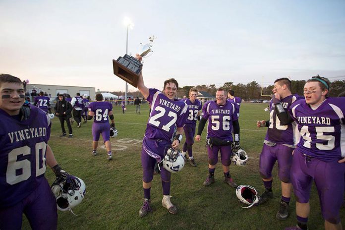 Steamship Authority ferry tickets are on sale for Martha’s Vineyard Regional High School football fans who wish to support the home team when they square off against Nantucket High School in the 37th edition of the Island Cup on the Whalers’ home turf Saturday afternoon, Nov. 21.