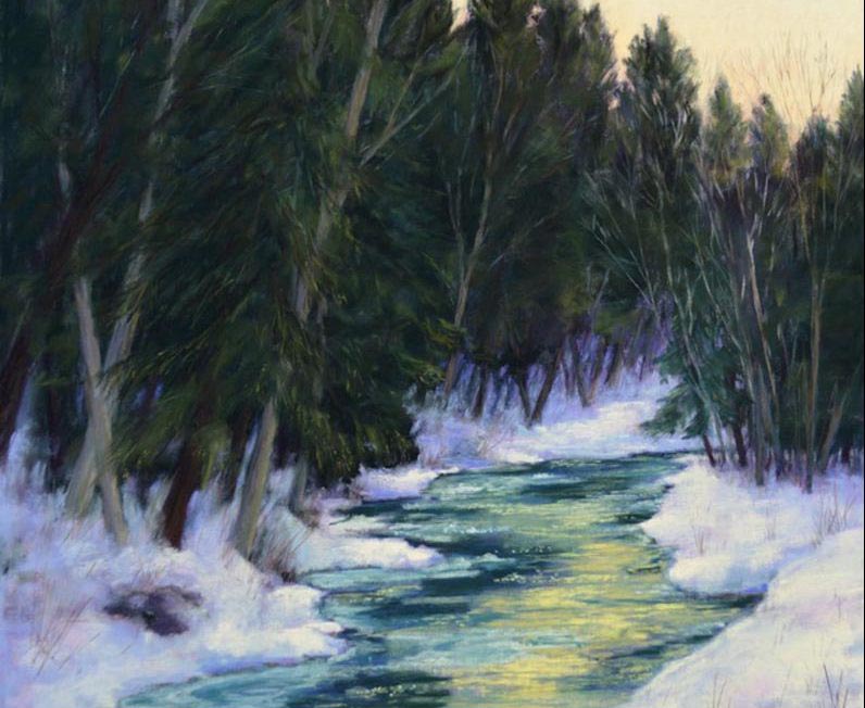 The artist finds that pastels lend themselves perfectly to her painting approach. “I do many, many layers,” she said. “With old school pastel painting, people would use paper that was very smooth. These days, most pastel painters use sanded paper or sanded board that provides a tooth, makes it gritty. That tooth allows the pastels to grip. It allows you to do multiple layers. The whole world of pastel painting has really changed over the years. It’s called a painting if the entire surface is covered, a drawing if there’s still some paper showing. There’s a trend toward pastel painting over the past 20 years.”