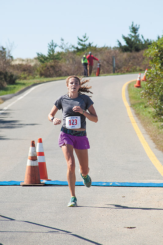 Molly Seidel of Watertown, Mass., streamed past the finish line in 35:01 to whooping cheers and cries of “girl power” as she became the first woman to take first place at the fifth Gay Head 10K.