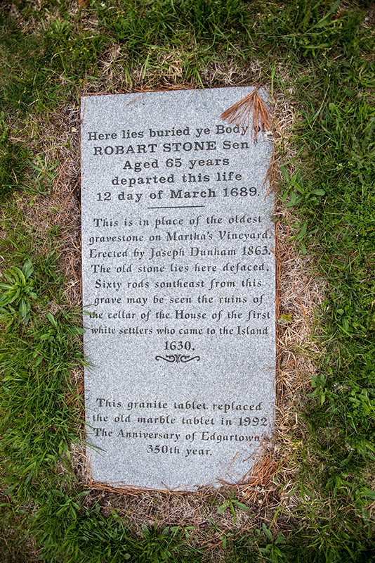 Throughout the cemetery the restoration work can be seen on the gravestones of Robart Stone, who died in 1689 and has the oldest gravestone in the entire cemetery, and John Coffin, who built the North Water Street house that now belongs to the Martha’s Vineyard Preservation Trust. One of the replacement stones is for Timothy Smith, a Revolutionary War soldier.