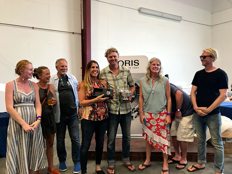 SailMV, host of the weekend of racing, kicked the fun off at its yearly dinner, auction, and fundraiser at Ralph Packer’s Tisbury Wharf Co. dock. And the Island nonprofit celebrated the occasion by naming the Callens as the recipients of the nonprofit’s Walter Cronkite Award, named for the CBS newsman and Edgartown resident who died in 2009. The honor recognizes those who love the sea and sailing, and who recognize the importance of encouraging young people to sail and acquaint themselves with the Island’s marine history, all of which is the foundation of SailMV’s work. Other Cronkite Award recipients have included Capt. Robert S. Douglas, master of the schooner Shenandoah, and Steve Ewing of Edgartown, the dockbuilder and poet. Cronkite was an honorary chairman of the organization.