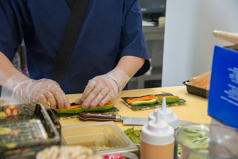 Reporter Rich Saltzberg was hard at work when he sampled the sushi. He said the spicy tuna roll was delicious, and I can attest to that. The tuna was smokey and full of flavor, but not overpowering. It was also the deep red color you see with wild-caught salmon, as opposed to the light-pinkish color seen with farm-raised fish. The seaweed was tightly rolled and the sticky white rice complemented the fish nicely.