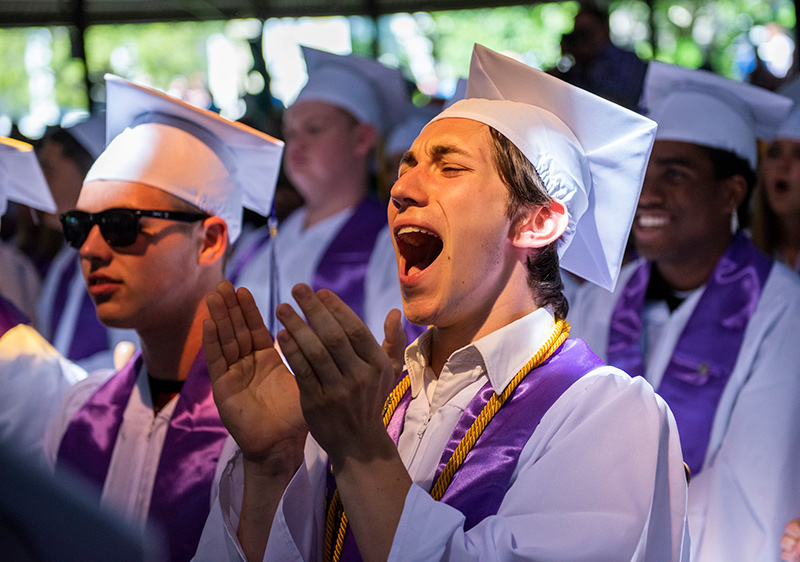 As the class of 2019 surrounded the Tabernacle Sunday, June 9, clad in white gowns, decorative stoles, and grins from ear to ear, they illuminated the space with reflections of sunshine. The 144 graduates, and their families, friends, teachers, and supporters, filled the Tabernacle and surrounding area to celebrate the commencement of a class described by salutatorian Alexis Condon as one that likes to do “our things, our way.”