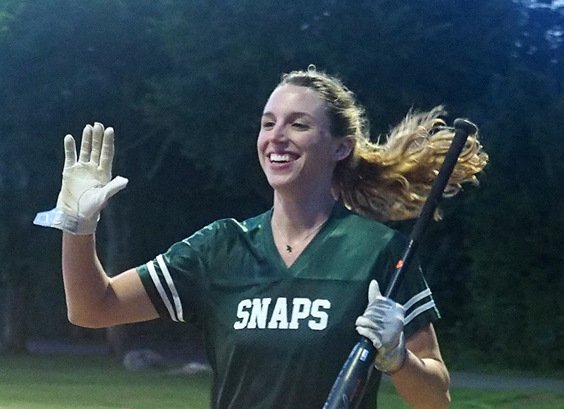 The Snaps began the night by completing the final inning of a wild 24-18 win in a game suspended from earlier this season. What an inning it was for Team Green. Haille McCarthy and Kelly Marolf each hit grand slams as the Snaps batted around, and scored 11 runs to rally from a 15-13 deficit.