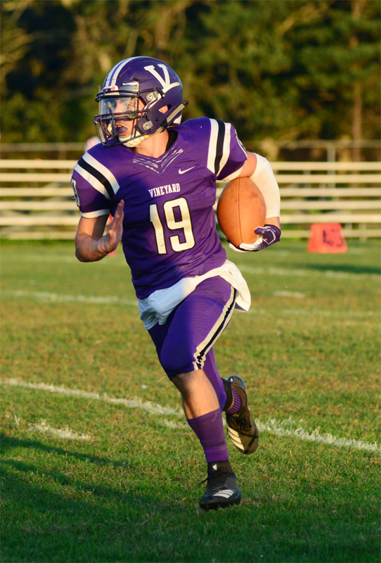 The Vineyarders had 300-plus total yards for the third week in a row, including 242 net rushing and 43 net passing yards, in addition to 27 kick return yards.