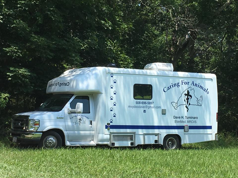 Since 2006, Dr. Dave Tuminaro’s Caring for Animals RV has been a familiar sight on the Island as he drives to his latest client. Though the work can be physically and emotionally demanding, the veterinarian has spent the past 14 years “truly caring for animals,” as one client puts it. He regularly makes the trip from Katama to Aquinnah (more easily in the winter than the summer), and covers all types of visits, since his RV is outfitted to store vaccines, medications, and other medical equipment for exams and surgeries. Tuminaro says his practice is made up of a third who are Vineyard visitors, a third met while on call (Island veterinarians share emergency calls) and a third who use him repeatedly for their animals, mostly dogs and cats, but sometimes birds and smaller animals. He enjoys being able take time off to tinker, ride a bike, or go fishing. Tuminaro has a Facebook page, and can be reached via email at mvydocdave@gmail.com.