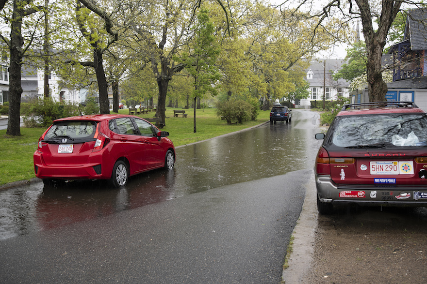 As of 4 pm, the National Weather Service reported that 3.52 inches of rain fell in Edgartown and 3.29 inches fell in Tisbury.