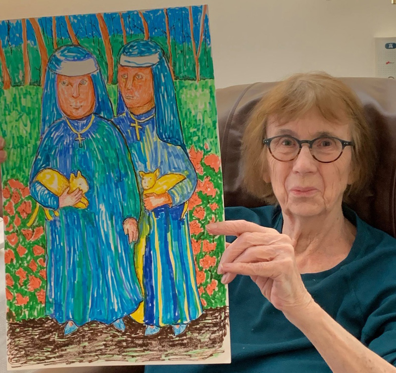 By early May, Jackie was ready to go home, and the Elizabeth Seton Residence published a special newsletter in her honor titled, “Artistic talent and creativity helps patient beat the coronavirus.”