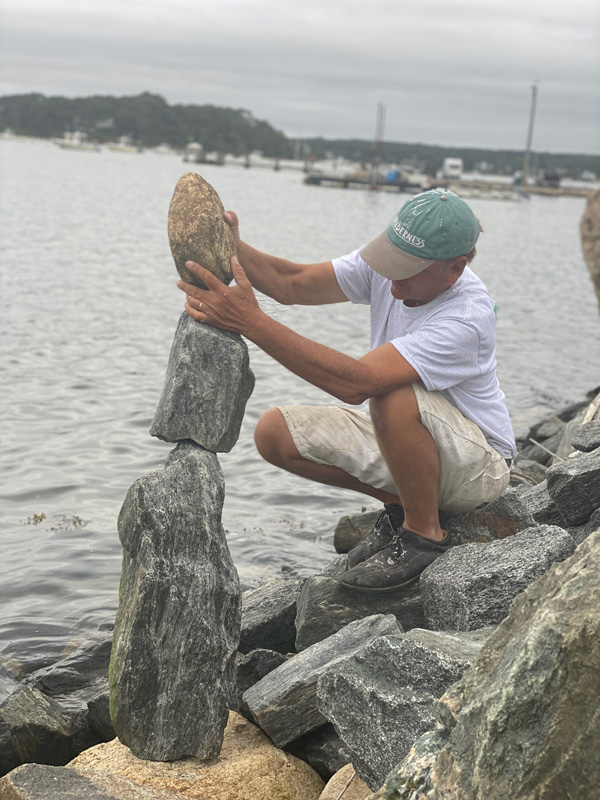 When dozens of cairns mysteriously popped up along the Lagoon Drawbridge in Vineyard Haven, it didn’t take long for Islanders to notice. In a line spanning almost the entirety of the bridge, these stone structures can be seen balanced deftly yet robustly, seemingly defying the laws of gravity. Behind this feat lies not some supernatural event, but a man who’s been building these spectacular structures. His name is Steve Jones.