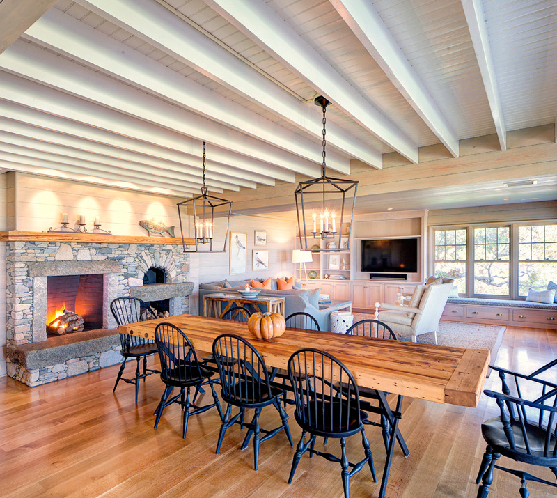 The project: A family wanted a renovation of a Harthaven home that would include creating one large gathering space from several smaller rooms. The new great room would feature a large kitchen, a dining area, a seating area, a fireplace, and views over the changing colors of beach grasses to Nantucket Sound beyond.