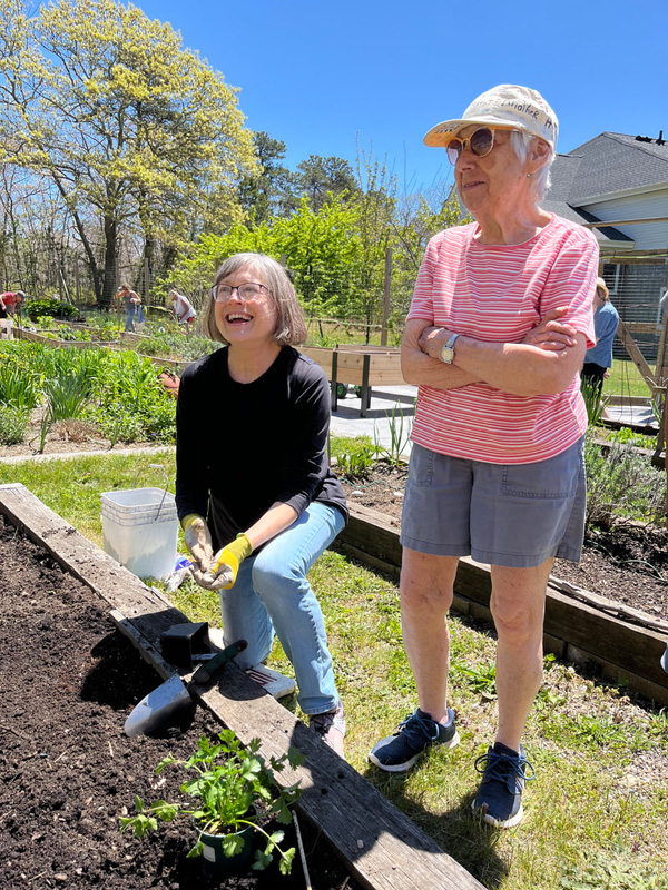 Among the Woodside gardeners benefiting from the MV Growers’ plant contributions were Eileen M. Lauinger and Peter Pfluger.
