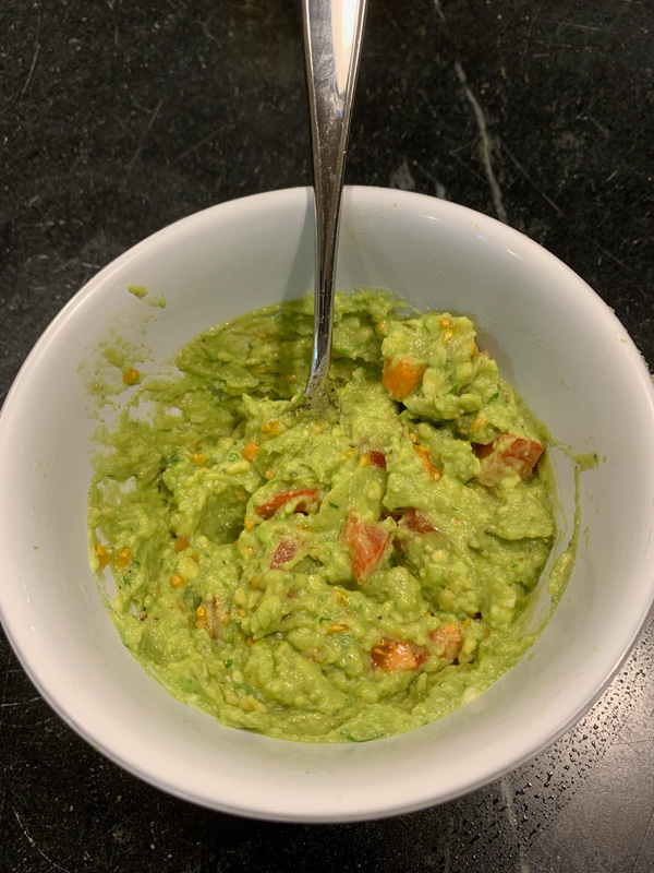 Mash the avocados in a large bowl. Dice the tomatoes and add them into the same bowl. Sprinkle in the cumin, onion powder, and red chili flakes. Add the minced garlic, cilantro, and lime juice. Mix well. Top it off with salt and pepper, to taste.