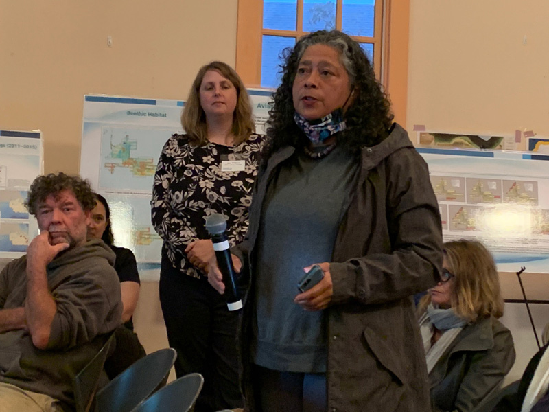 Tribe member Berta Welch asked, “How does this project benefit the residents of Martha’s Vineyard?” and welcomed the presenters to “our indigenous homeland of Aquinnah.”