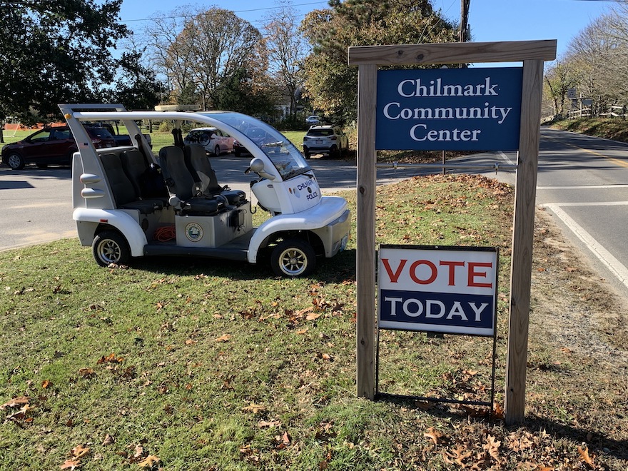 On a brisk fall day filled with sunshine, there was a steady stream of voters at the Island’s six polling places. All of the towns had greater than a 50 percent turnout, with Aquinnah leading the way with 66.6 percent of its 413 voters casting ballots, while Edgartown had 50.5 percent of its 4,312 registered voters cast ballots. Overall, 55.4 percent of the Island’s eligible 16,620 voters cast ballots.