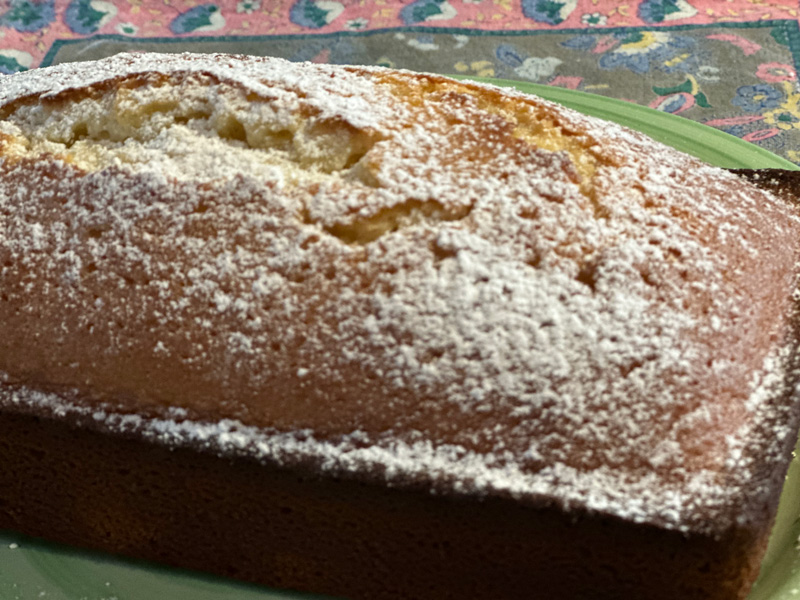 Pour into the prepared cake pan and bake for approximately 40 minutes, or until a toothpick comes out clean. (For the loaf pan, it was closer to 50 to 55 minutes.) Let cool in the pan, then remove to a cake plate.