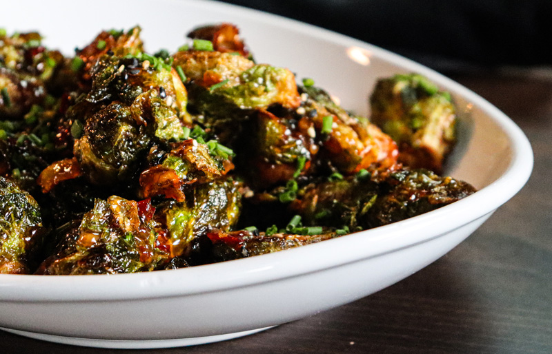 The boneless wings absolutely filled the round container they came in, and, aside from being a little saltier than usual, were a good base for the rest of the meal. I piled on my favorite side, the Brussels sprouts, because I knew I’d want more of them than anything else. These sprouts did not disappoint. They were smothered in a sweet-and-spicy glaze that I plan to try to replicate one of these days (although that doesn’t usually work out the way I’d like). I’ll confess right now that I did eat the majority of those myself. The crispy housemade chips are the same tasty offering you’re used to getting at the first-floor sister restaurant, Waterside. The cheese curds were lightly coated in breading, so I didn’t eat them as guiltily as I thought I might. I can report that the smash burger was oozing with cheese and topped with special sauce, diced onion, lettuce, tomato, and pickles, and served with fries. It was reportedly tasty, I found out the next morning, because Dad had saved the meal to go with some late-night movie watching.