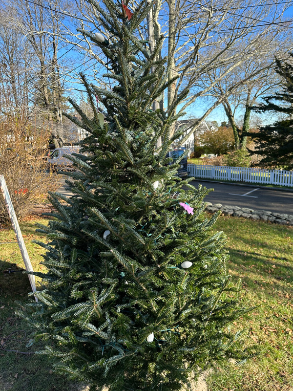 Polly Simpkins is one of those people who lifts your spirits just by having a conversation with you. And that’s extraordinary. I happened to notice her family has their annual Wishing Tree up in the front yard of her William Street home in Vineyard Haven. About six years ago, I saw the tree while I was taking a walk, and wrote my own wishes on a little piece of paper to tie to the tree. Since that wish eventually came to pass, I thought it would be wise to add another one this year, so I sent Polly an email and we visited for a little while this week, before I tied my wish(es) onto the tree.
