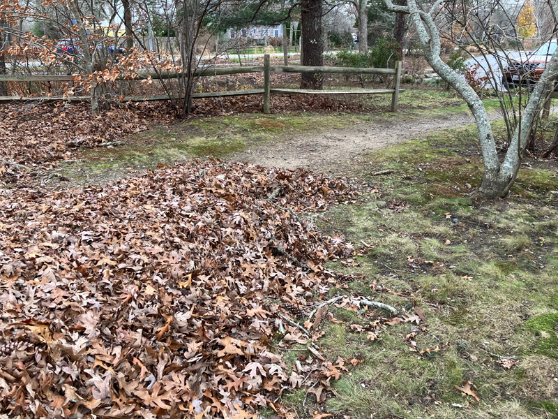 Island soil is mere sand, with a thin bioactive layer. Two-cycle motors snarling, the removal of oak leaves (pictured), especially in a rural setting such as North Tisbury, is but one example of high-impact landscaping practice that has no value.