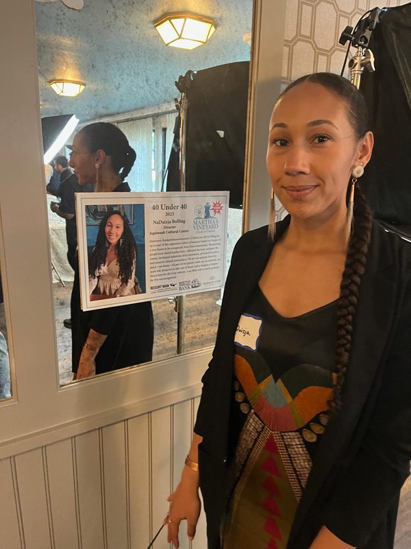 NaDaizja Bolling was raised in a family that lived and breathed public service. Her father “always found himself in nonprofit roles, usually relating to youth and sports. He comes from a big public service and political family in Boston. His grandfather, Royal Bolling Sr., was a state senator; his uncle, Bruce Bolling, was a member of the Boston City Council, and another uncle, Royal Bolling Jr., was a state representative; they were all in office in Boston at one time or another.” Bolling herself worked at the Aquinnah Shop takeout counter “until I was old enough to work as a waitress.” Later, when she was in D.C. during COVID, she began to attend the tribal council meetings on Zoom. “That was the first time that I was paying attention to the political scene there — tribal politics — and things weren’t great. There was a small group of us, maybe 20, largely my generation, and we were supporting election ordinance changes proposed by tribal members, working to keep people engaged.” This was between her studies and her job, “at nighttime after my work at Quadrant, which were already long days, 12-hour days. But I needed to feel some sort of moral satisfaction and connection.”