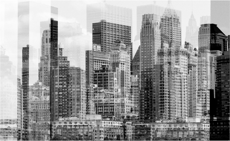 The wonderful rhythm created by the multiple exposures in “NYC Skyline” was a happy accident. Taken when still new to working with the Leica, Kruszewski didn’t load the film quite properly. But the ghostlike repetition of the skyscrapers marching across the picture plane, taken from the Circle Line boat that travels around Manhattan, keeps you looking to see just what exactly is going on.