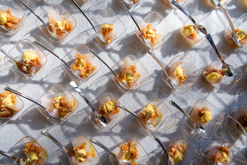 Garde East brought the sand and sea from their front porch with them. Their table was decorated to highlight their beachfront dining and “docktail” space. On a less sandy side of the table, they had a finely diced tuna poke with a ginger ponzu, black and white sesame, avocado mousse, and miso caramel — my personal favorite food of the night.