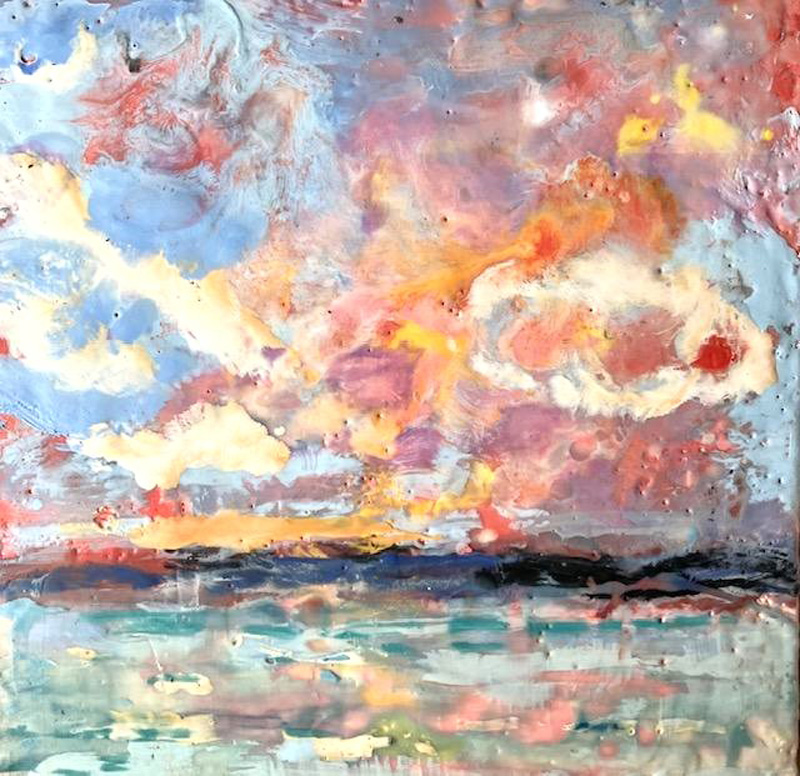 “I was very representational with watercolors,” says the artist. “Encaustics loosened me up a lot.”