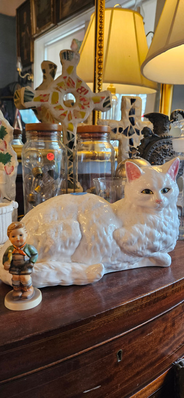 My late mother was an antique dealer, estate appraiser, and household sale guru, so wandering around Second Treasures was bittersweet. The scents, sights, and sounds took me right back to my mom. Around each corner, I discovered new delights — furniture, paintings, clocks, glass cabinets filled with jewelry and other smalls, figurines, masks, lamps, and much more.