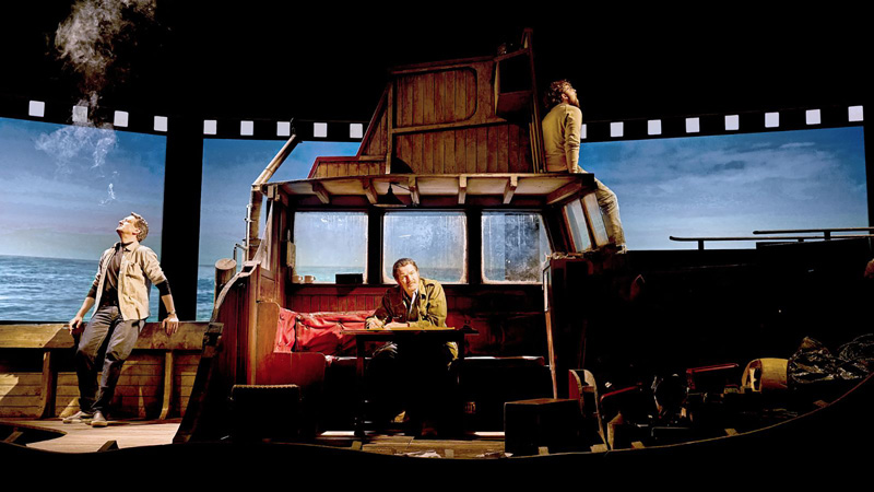 Throughout the play, the character of Robert Shaw struggles with the script of Quint’s famous speech about his survival of the sinking of the USS Indianapolis — the real-life tragedy in which hundreds of Navy sailors died, with somewhere from a few dozen to more than 100 killed by shark attacks.