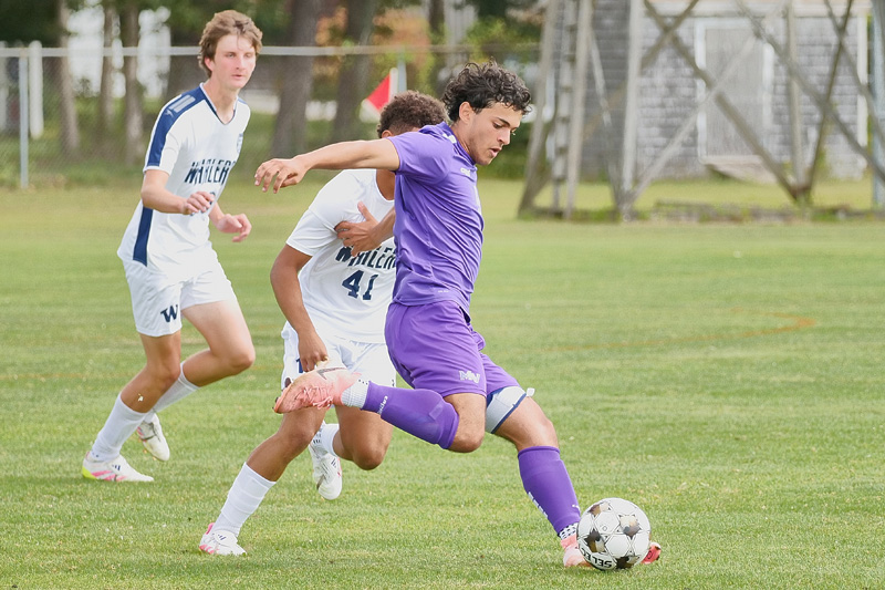 The Martha’s Vineyard Regional High School varsity boys soccer team faced off against the Nantucket High School Whalers at McCarthy memorial field on Sunday, falling 1-0 in a gritty rivalry match.