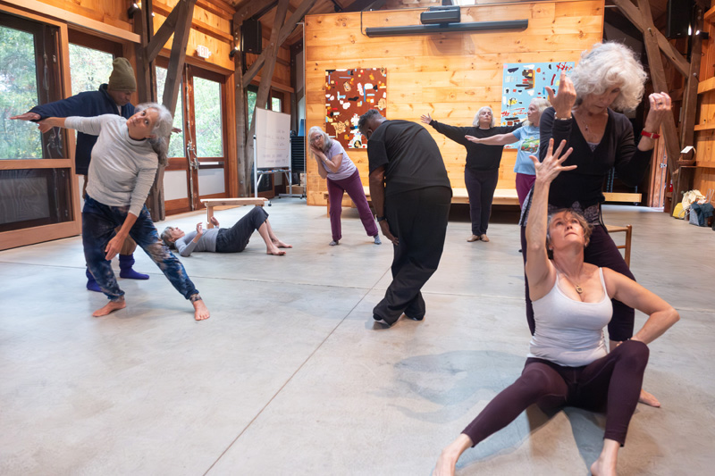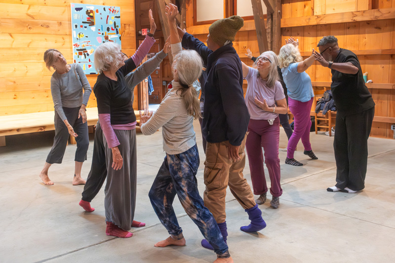 Liz Gregg, who last danced in college and is new to the Vineyard, shares her experience of connecting with others in what she describes as a really deep way. “As my body ages, I feel more connected to other bodies because I’ve grown more self-compassionate. Often, I’m working on the ground or in the corner when someone comes up and connects with me physically; it’s such a welcome thing. There’s art that can happen between us.”
