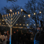 Under the glow of outdoor lights across the Edgartown mini-park, next to the bookstore, a torch lit the shamash, or helper candle, on a...